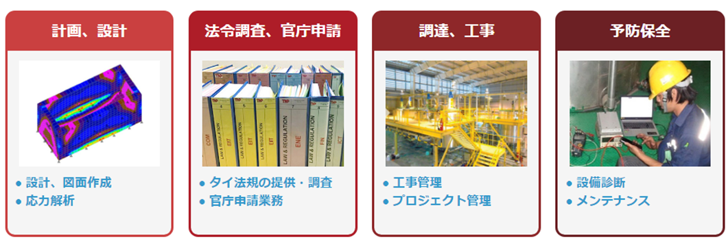 当社は長年プラントのEPC コントラクターとしての事業を行ってまいりましたが、2016年に設計、コンサルタント事業を開始いたしました。タイには日本のような設計事務所、技術支援を行うコンサルタントが皆無に近く、個人や数人のグループが行っているのみです。これらの多くはキャパシティの問題や納期を守るのが困難で実務に適用するのはあまり実用的とは言えません。